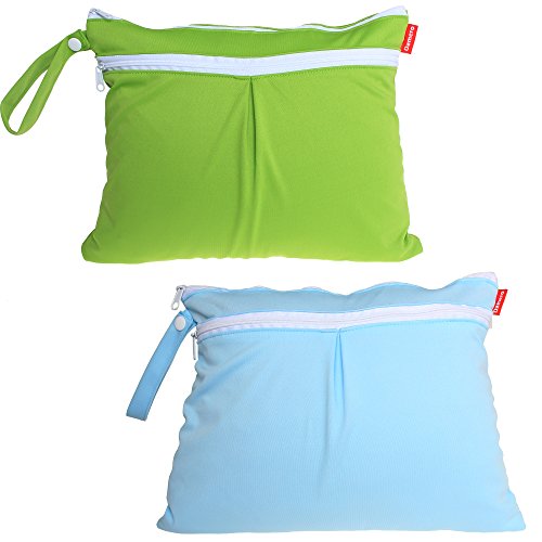 2pcs/pack, Plain Wet Bag for Cloth and Baby stuffs - keep smells and moisture contained and make washing at home much easier. Mark: Not 100% waterproof because of sewing made;Double Zips mean clean and dirty diapers, or wipes, can be kept together by but separate for easy bag organizing and washing;Reusable, and machine washable, approx.: L12.5 (Bottom) in x H9.8 in, L11 (Top) in x H9.8 in,;Comes with durable handle for easy carrying or attaching to your diaper bag or stroller;Also great for travel, you can organizer your clean or dirty clothes, underwear, socks, swimming suits and other belongings.