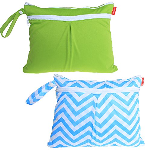 - Damero 2pcs/pack Cute Travel Baby Wet and Dry Cloth Diaper Organizer Bag. Green+Blue Chevron