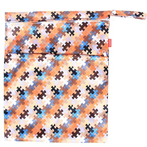 - Damero 2pcs Pack Travel Baby Wet and Dry Cloth Diaper Organizer Bag, Puzzle Pattern