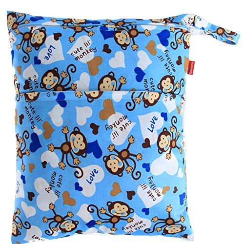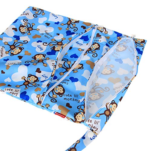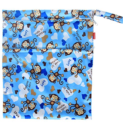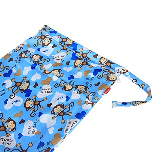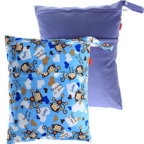Damero ウェットバック(防水バッグ) 可愛い 2点セット オムツ・着替え・タオル・水着・お風呂用品・食事セット マルチ収納 温泉 スポーツジム ショッピングモール 大活躍(L,紫+猿)