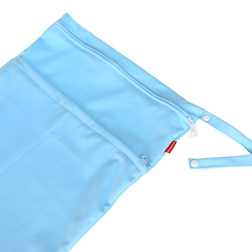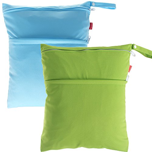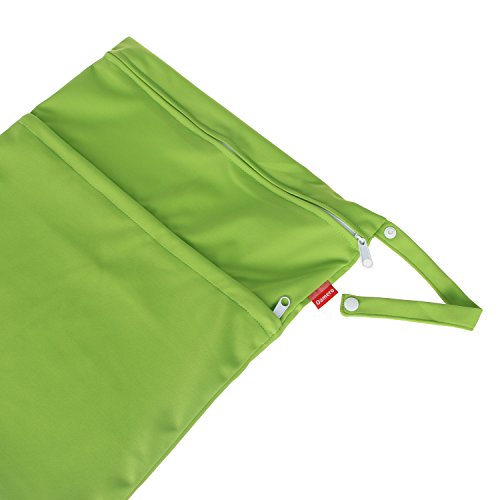 Damero ウェットバック(防水バッグ) 可愛い 2点セット オムツ・着替え・タオル・水着・お風呂用品・食事セット マルチ収納 温泉 スポーツジム ショッピングモール 大活躍(L,緑+水色)