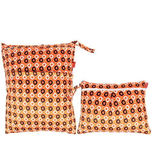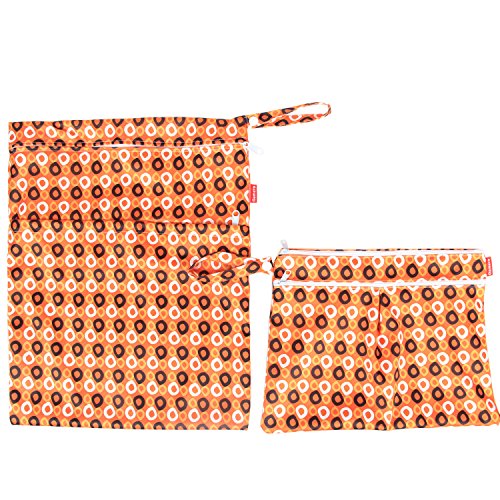 Damero ウェットバック(防水バッグ) 2点セット オムツ・おしりふき・着替え・タオル・水着・お風呂用品・食事セット入れ お出かけ 温泉 スポーツ 大活躍 可愛い マルチ収納(オレンジドット)