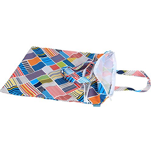 Teamoy ウェットバック(防水バッグ) 可愛い オムツ・おしりふき・着替え・タオル・水着・お風呂用品・食事セット入れ マルチ収納 ショッピングモール 温泉 スポーツジムに活躍(マルチストライプ)