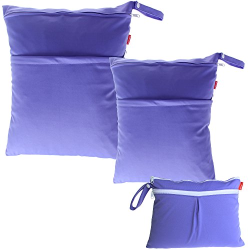 Damero ウェットバック(防水バッグ) 3点セット 可愛い オムツ・おしりふき・着替え・タオル・水着・お風呂用品・食事セット入れ マルチ収納 お出かけ 温泉 スポーツ 大活躍(紫)