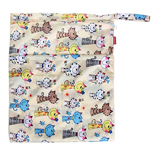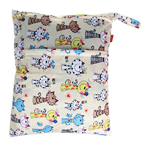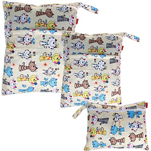 Damero ウェットバック(防水バッグ) 3点セット 可愛い オムツ・おしりふき・着替え・タオル・水着・お風呂用品・食事セット入れ マルチ収納 お出かけ 温泉 スポーツ 大活躍(猫)