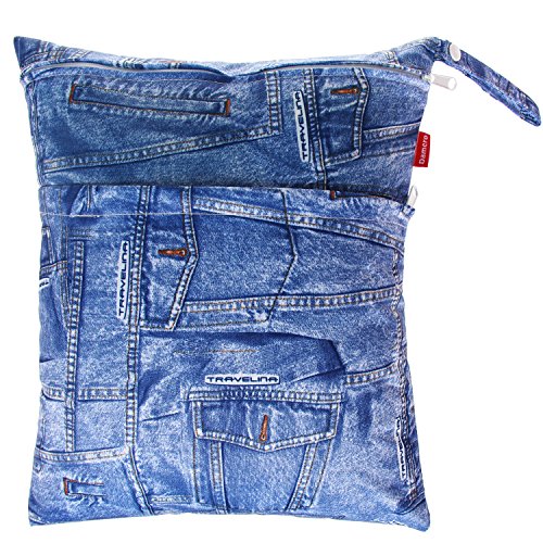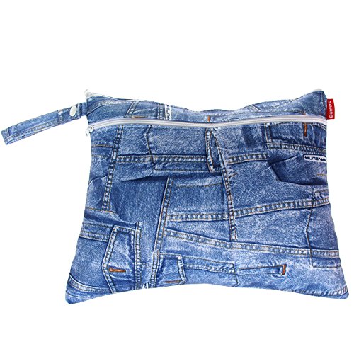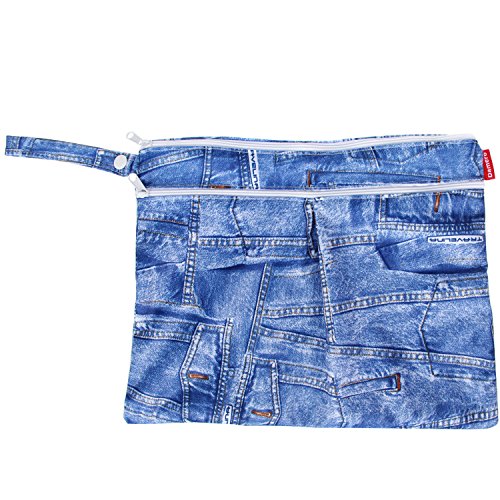 Damero ウェットバック(防水バッグ) 3点セット 可愛い オムツ・おしりふき・着替え・タオル・水着・お風呂用品・食事セット入れ マルチ収納 お出かけ 温泉 スポーツ 大活躍(デニム)