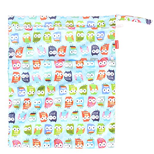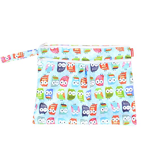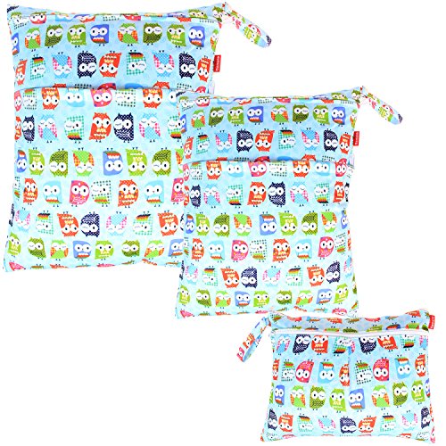 Damero ウェットバック(防水バッグ) 3点セット 可愛い オムツ・おしりふき・着替え・タオル・水着・お風呂用品・食事セット入れ マルチ収納 お出かけ 温泉 スポーツ 大活躍(可愛いフクロウ)