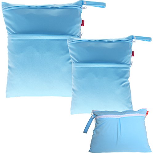 Damero ウェットバック(防水バッグ) 3点セット 可愛い オムツ・おしりふき・着替え・タオル・水着・お風呂用品・食事セット入れ マルチ収納 お出かけ 温泉 スポーツ 大活躍(ライトブルー)