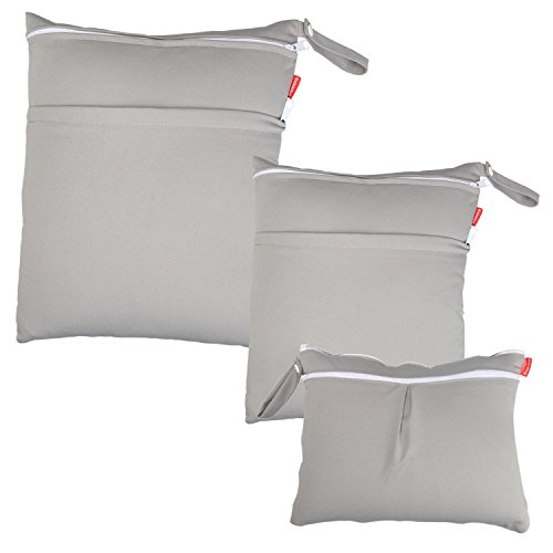 Damero ウェットバック(防水バッグ) 3点セット 可愛い オムツ・おしりふき・着替え・タオル・水着・お風呂用品・食事セット入れ マルチ収納 お出かけ 温泉 スポーツ 大活躍(グレー)