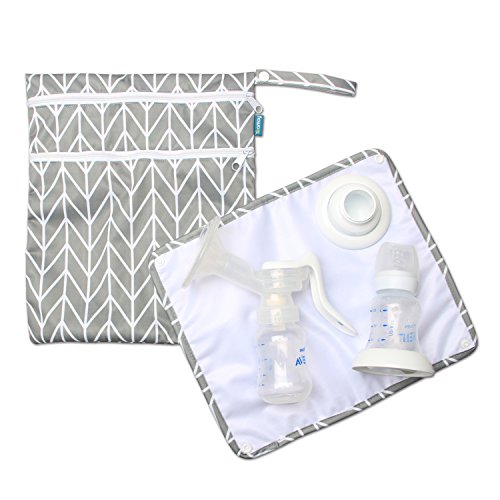Teamoy ウェットバッグ(防水バッグ) パット付き さく乳器 母乳パック 母乳ボトル 保管 移動 便利(グレー矢)