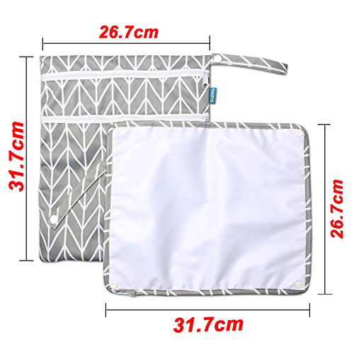 - 裏地がラミネート素材で汚れにくく、洗濯機で洗えて乾きも早い再利用可能な防水ポーチです。寸法: L26.5*H32cm(バッグ)、L31*W26cm(パット)