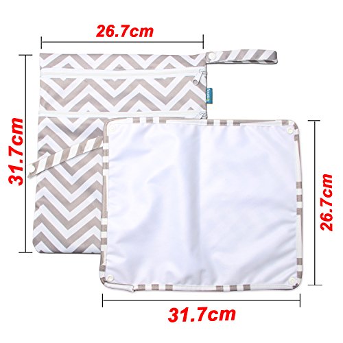 - 裏地がラミネート素材で汚れにくく、洗濯機で洗えて乾きも早い再利用可能な防水ポーチです。寸法: L26.5*H32cm(バッグ)、L31*W26cm(パット)