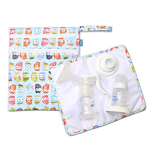 Teamoy ウェットバッグ(防水バッグ) パット付き さく乳器 母乳パック 母乳ボトル 保管 移動 便利(可愛いフクロウ)