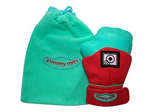 Yummy Mitt Teething Mitten (GLOW IN THE DARK) Red & Turquoise (3-12 months recommended age) by Yummy Mitt