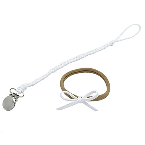 Davcor Moring ベビー おしゃぶりホルダー 乳首チェーン 手編みのロープ ボウヘアバンド 産祝い 内祝い ギフト かわいい キュートおしゃれ 2点セット ホワイト
