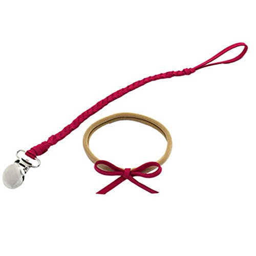 Davcor Moring ベビー おしゃぶりホルダー 乳首チェーン 手編みのロープ ボウヘアバンド 産祝い 内祝い ギフト かわいい キュートおしゃれ 2点セット ローズ