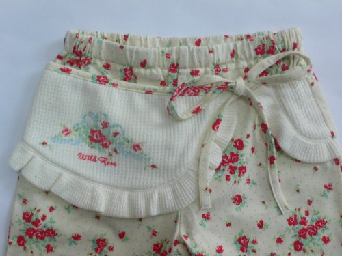 - エプロンの可愛いローズのワンポイント柄とドットとローズの総柄の組み合わせもお洒落なレギンスです。