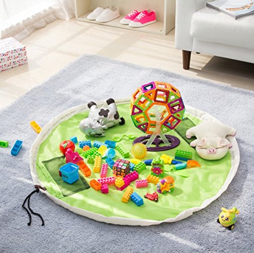 Dazers おもちゃ収納バッグ 子どもプレイマット お片付け簡単 特大マット 直径150cm ブロック 収納袋 (グリーン(新型))