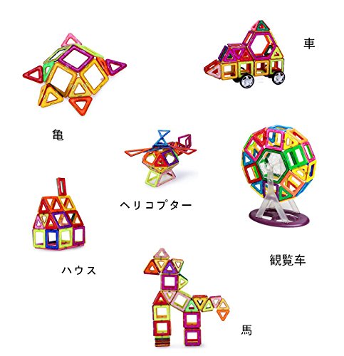 - 建物、花、飛行機、馬、魚などさまざまなものを作って、子供の想像力育てる知育おもちゃです。