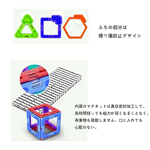- 年齢対象:3歳以上の男の子・女の子に適用して、口に入れても安全な高品質のABS素材とマグネットで作られております。プラスチック各辺の中央には強磁性のマグネットが内蔵されています。長時間経っても、磁力が弱くなりなく、有害物も発散しません。