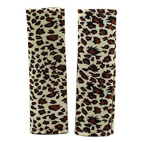ヒョウ柄車の安全シートベルトカバーショルダーパッドベージュブラウンペア