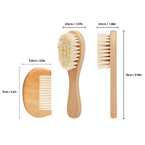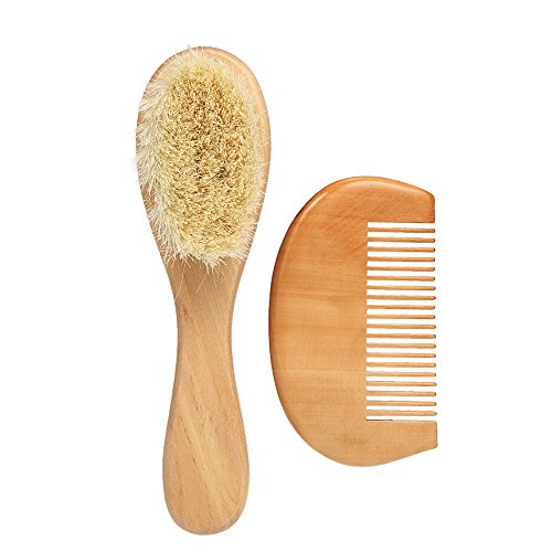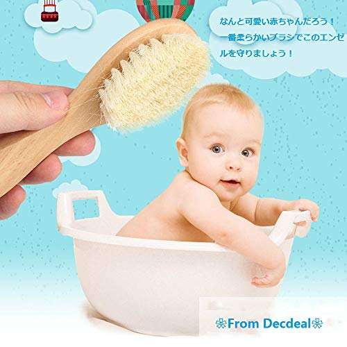 Decdeal 新生児の髪ブラシ 髪ブラシ 櫛セット 木製のハンドル 幼児の櫛 ソフトウールの髪 頭皮のマッサージ (ブラシ+コーム)