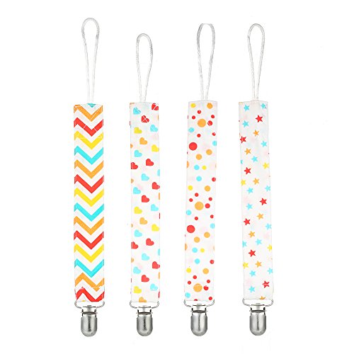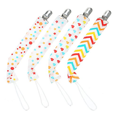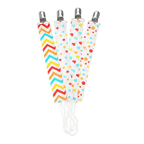 Decdeal 4枚/セット おしゃぶりホルダー クリップ 赤ちゃん幼 コットン ステンレススチール クリップ