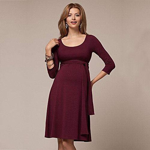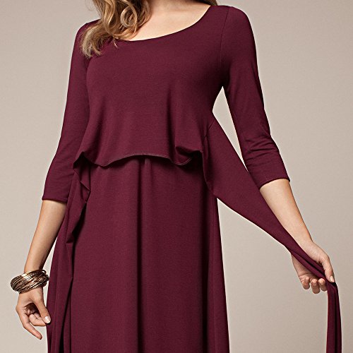 Decdeal レディース マタニティ 看護ドレス ローブラウンドネック ベルト付き 3/4袖 妊娠服