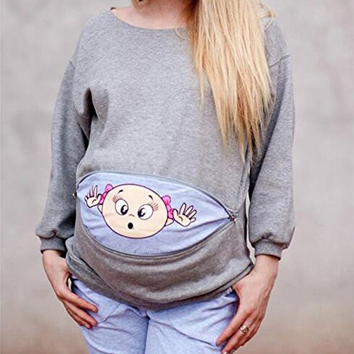 Decdeal マタニティ スウェット シャツ ロングスリーブ プリントジッパー 妊娠中のママ トップスセーター パーカー