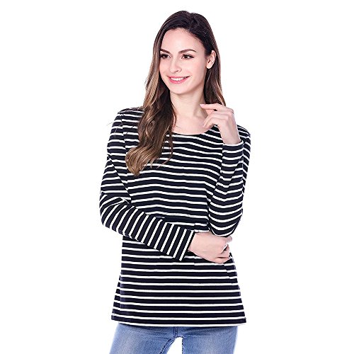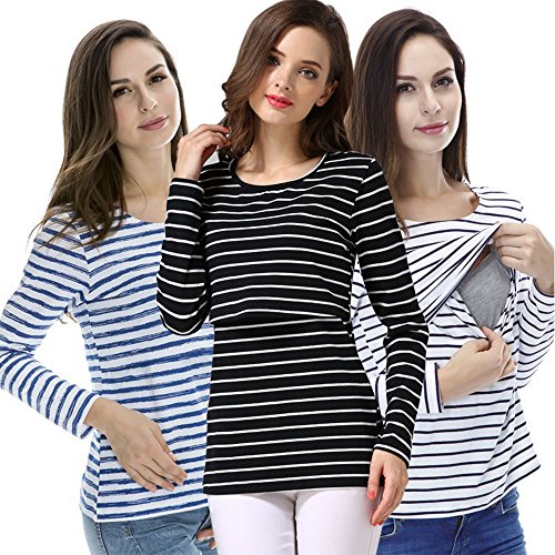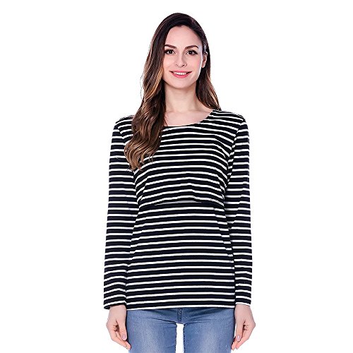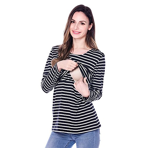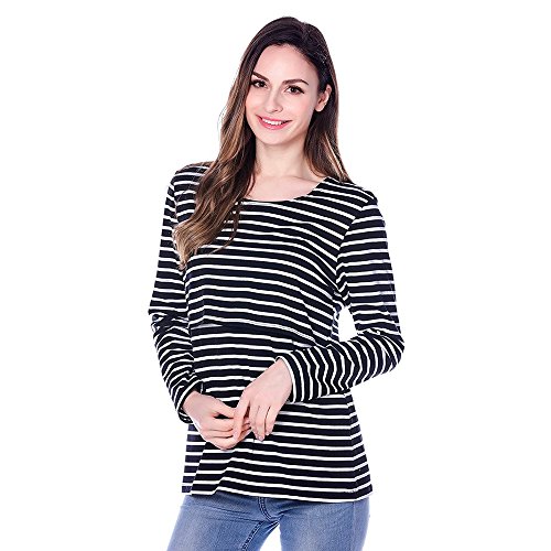 Decdeal レディース マタニティ ストライプ 看護 母乳授乳 シャツ ロングスリーブ トップ服