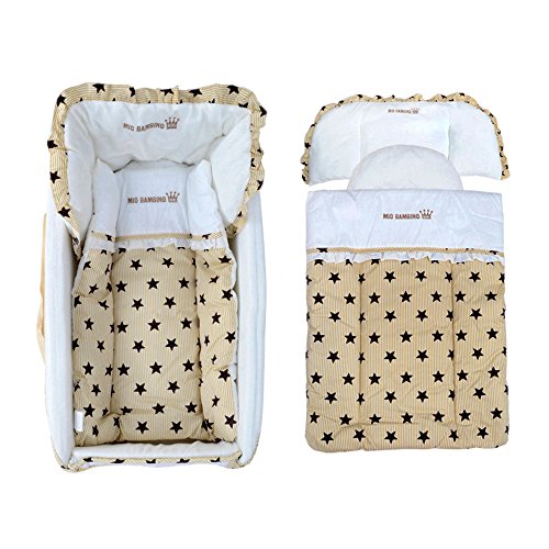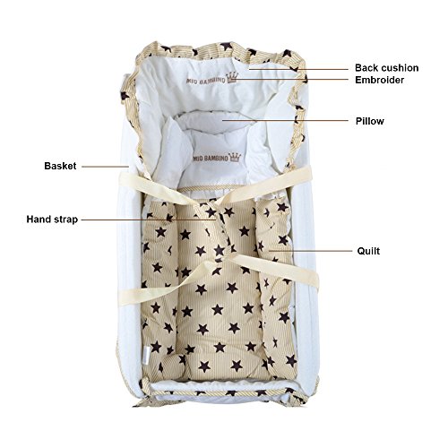- 木製のフレーム、バスケット、キルト、枕、マットレスを含みます。