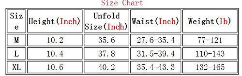 XL高さ(インチ) 10.6 折りたたみサイズ(インチ)40.2ウエスト(インチ) 35.4-43.3 重量(ポンド)132-165