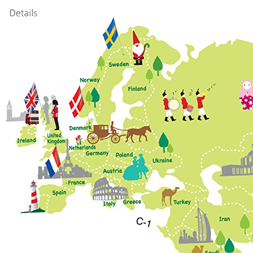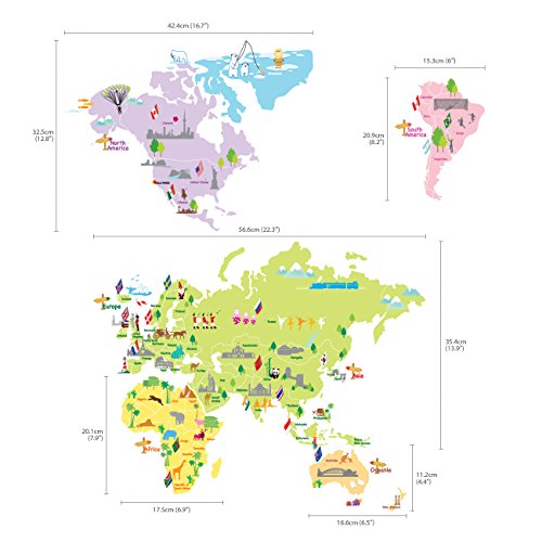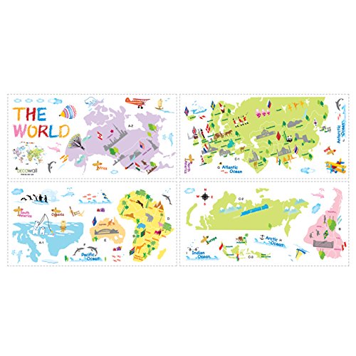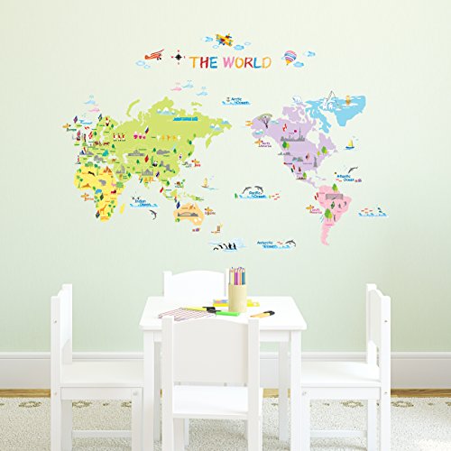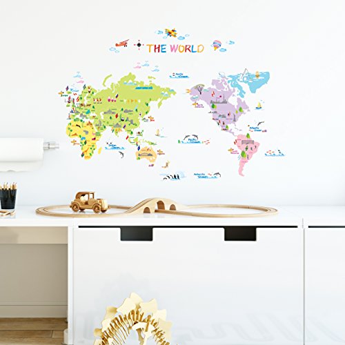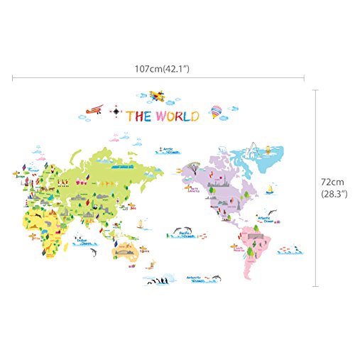 Decowall 多色刷り世界地図 ウォール ステッカー デコ 幼稚園 保育園 子供部屋 DW-1203