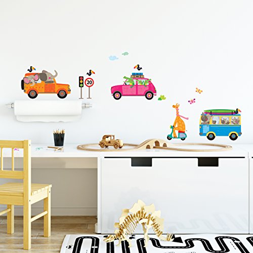 Decowall 動物輸送と車 動物 ウォール ステッカー デコ 幼稚園 保育園 子供部屋 DA-1710A