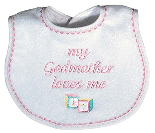 - Raindrops My Godmother Loves Me Embroidered Bib, Pink