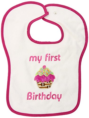 "My First Birthday" appliqued, 100% cotton velour terry bib.