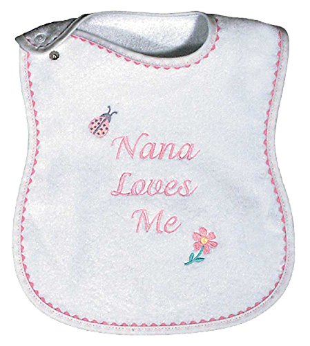 "Nana Loves Me" embroideries, 100% cotton velour terry bib.