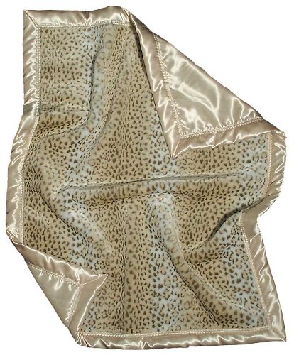 Ivory polyester, Faux Fur Lynx receiving blanket with a 2 inch satin embroidered trim, and satin backing. Tied with a ribbon and wooden flower accents.