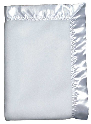 White polyester, Nordic fleece blanket with a 2 inch satin embroidered trim. This baby blanket is perfect for personalization.