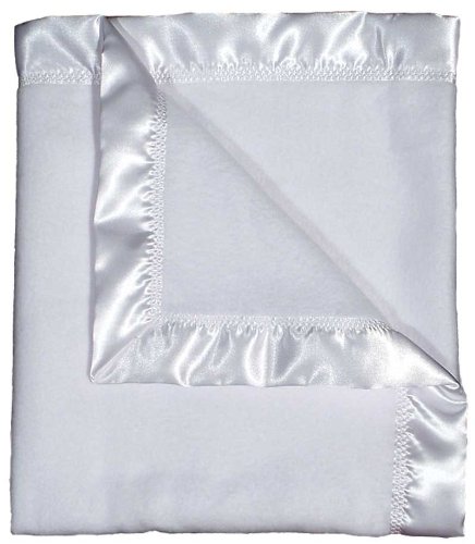 White polyester, Nordic fleece blanket with a 2 inch satin embroidered trim. This baby blanket is perfect for personalization.