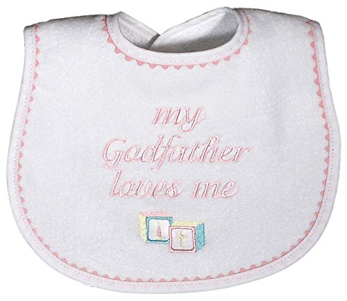 - Raindrops My Godfather Loves Me Embroidered Bib, Pink