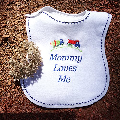 100% cotton velour terry "Mommy Loves Me" embroidered Medium Bib Royal