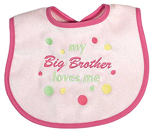 - Raindrops Big Brother Loves Me Embroidered Bib, Pink