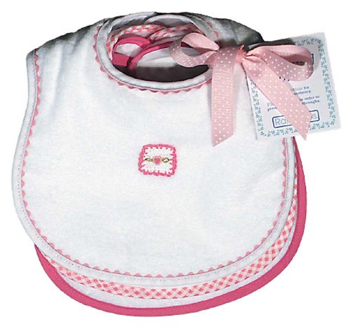 100% cotton velour terry water resistant backed Pastel Teething Bib Set with top bib appliqued White/Pink