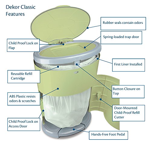 Dekor Classic Hands-Free Diaper Pail, Sage by dekor
