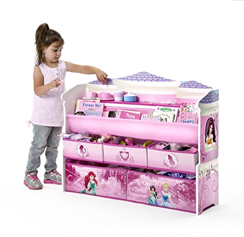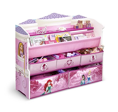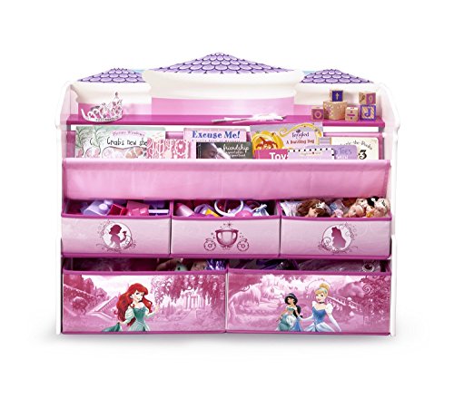 Make your girl's bedroom or play space extra-special with a little help from Disney's Princesses. Boasting colorful graphics, this Princess Deluxe Book & Toy Organizer from Delta Children features fabric bins and a two-tiered bookrack supported by a sturdy wood frame.