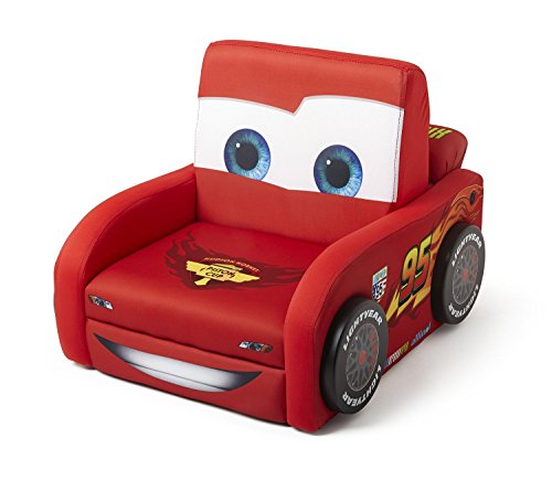 Let your little one cool his engines in this Cars Shaped Deluxe Upholstered Chair from Delta Children! All geared up with three-dimensional wheels and animated graphics of Lightning McQueen, it's the perfect place for your little speed racer to make a pit stop.