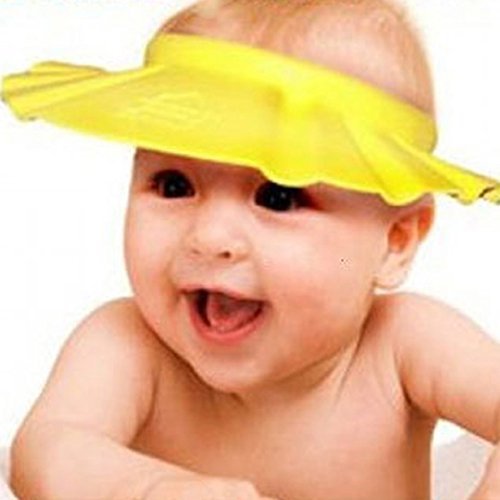 Demiawaking シャワー用防水帽 シャンプーハット 大きさが調整可能 ベビー 子供 髪を洗うシールド (イエロー)