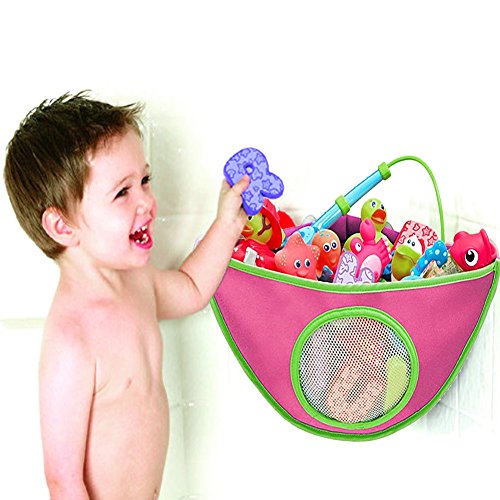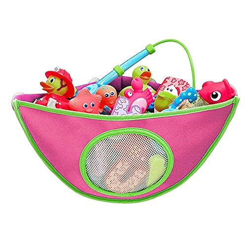 Demiawaking 玩具収納袋 お風呂 壁掛け用 収納ポケット おもちゃ片付け 小物入れ 省スペース 吸盤付き (ローズレッド)