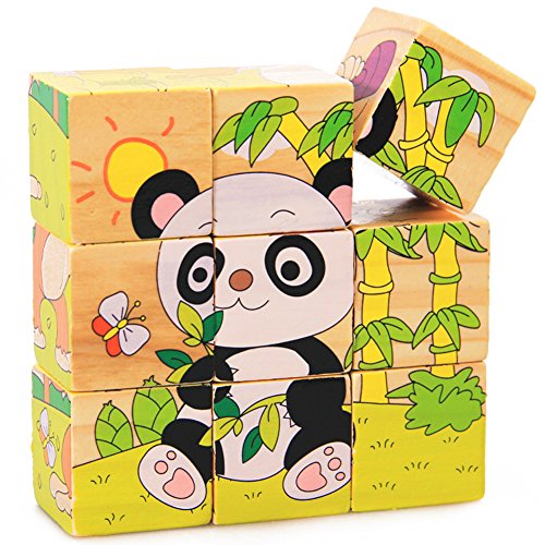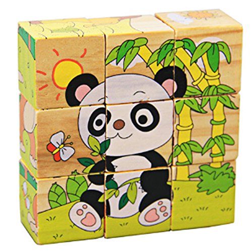 Demiawaking かわいい幼児 子供 教育教材 木のおもちゃ 知育/啓蒙教育おもちゃ パンダ積み木・6模様できる